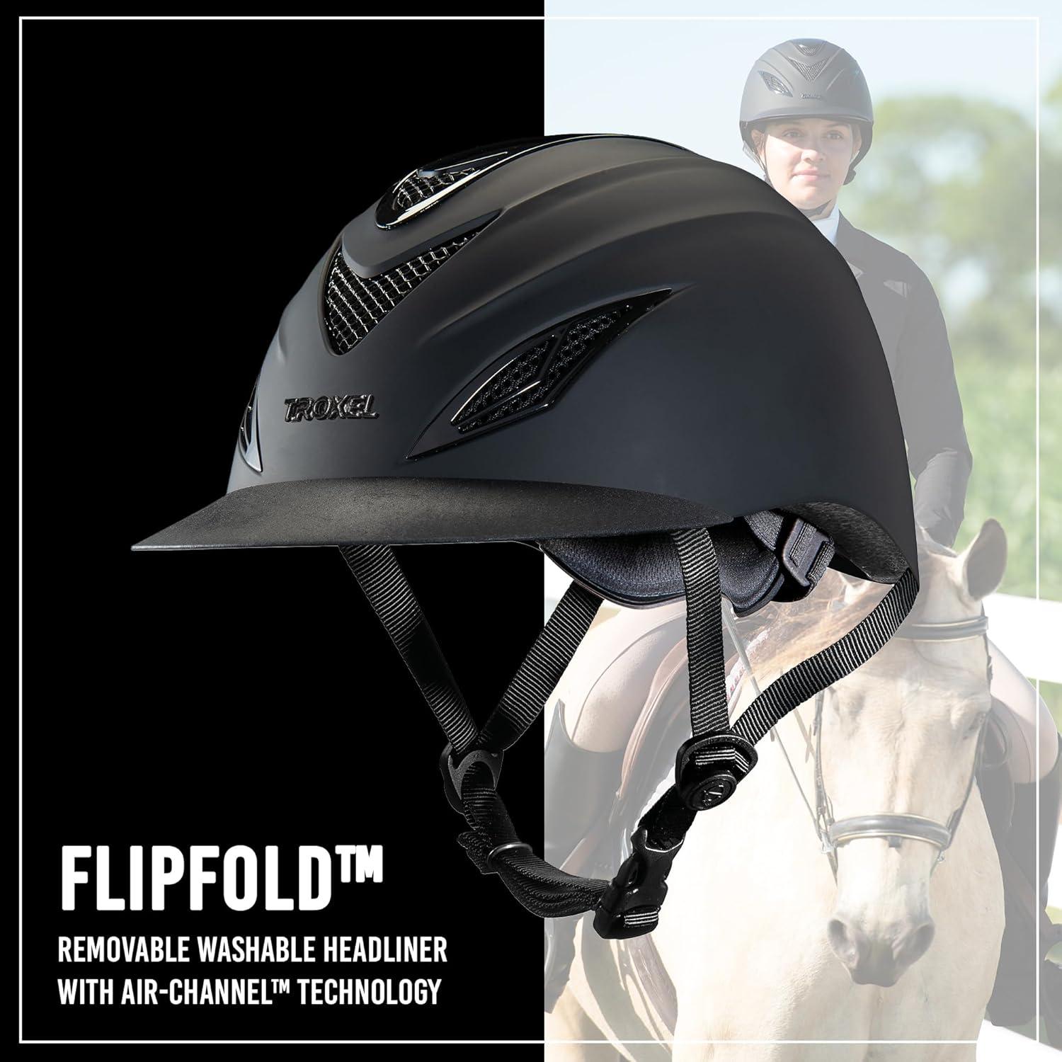 Maximum Ventilation: The bold metal cooling vents in this horse back riding helmet keep you cool and comfortable during long rides; also includes a FlipFold removable washable headliner with Air-Channel technology for a breathable experience