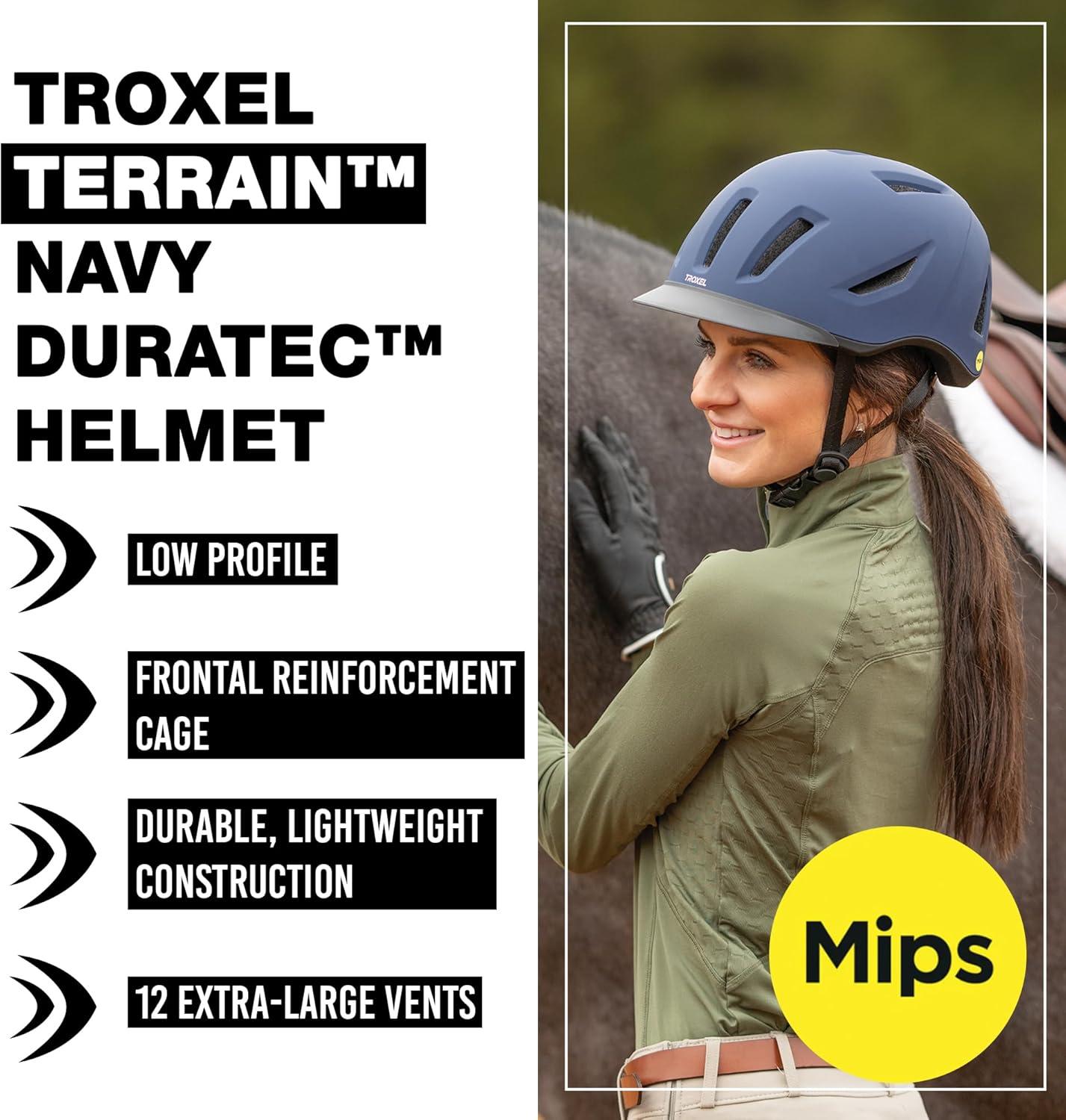 Troxel Terrain MIPS Cooling Horse Riding Helmet, Low-Profile, Micro-Adjustable Design, Horseback Riding Gear(Navy Duratec)